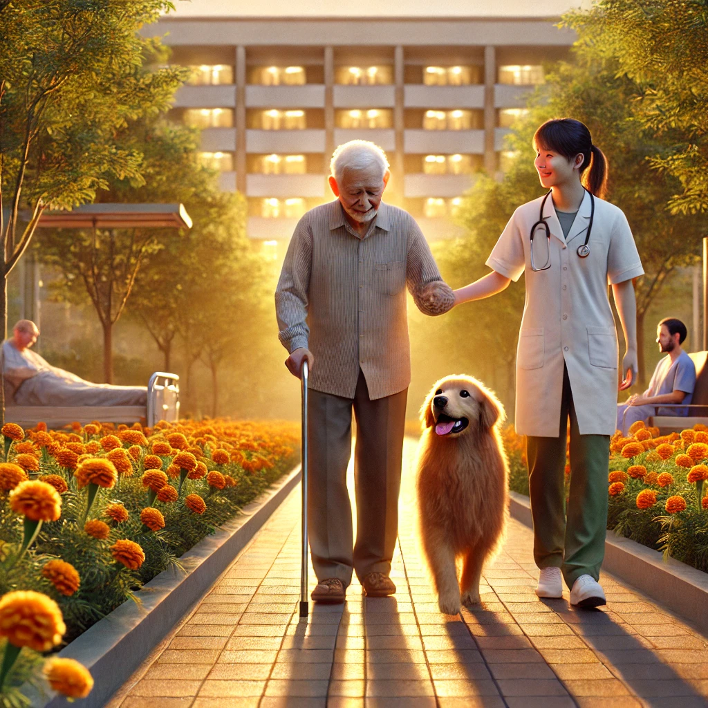 I glanced at the nurse, who nodded with approval. “Of course,” I said, helping him sit up. With Riley happily leading the way, we made our way to the hospital courtyard.