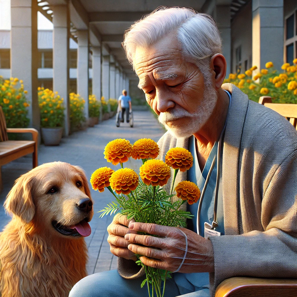 His eyes met mine, and for a moment, he looked alive, awake. “She used to bring me marigolds every Sunday,” he said, his voice raspy but clear. “Said they matched my hair when I was young. Even after… she always brought them.” His voice faded, heavy with the pain of old memories.