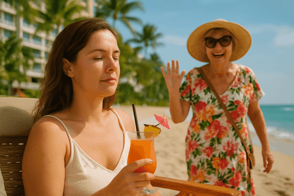 I was enjoying the sound of the ocean when I turned my head and saw her. Linda. My mother-in-law. Dressed in a bright floral dress and wearing oversized sunglasses, she waved excitedly.