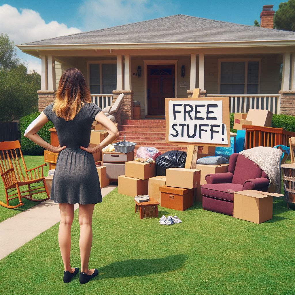 “What’s up?” I shouted. “Why is everything I own on the lawn?! Have you lost your mind?”