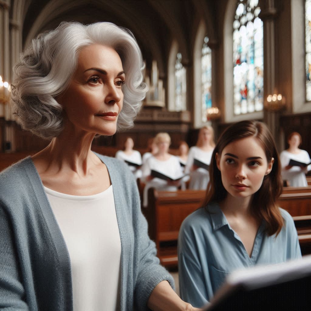 Inside the church, Betty took over as usual. She directed everyone around like she owned the place—telling altos they were too flat and tenors too sharp. When she turned to me at the piano, her tone got sharper.