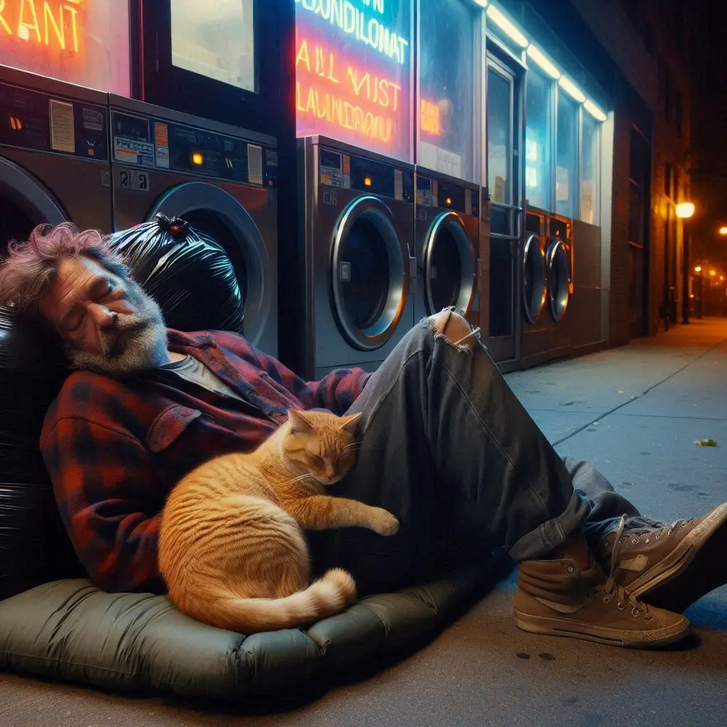 I first saw him outside the all-night laundromat, curled up on a ripped camping mat as if it were the most comfortable bed in the world.