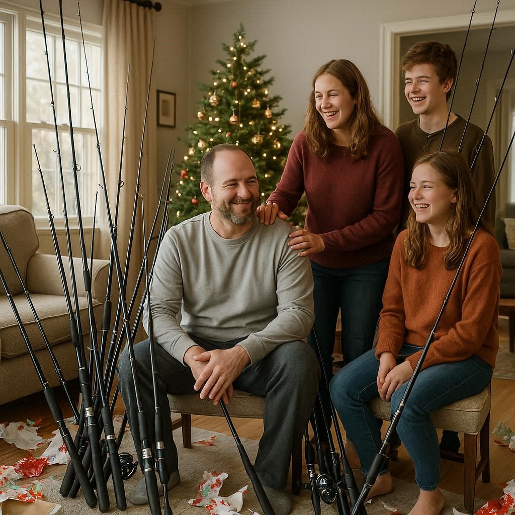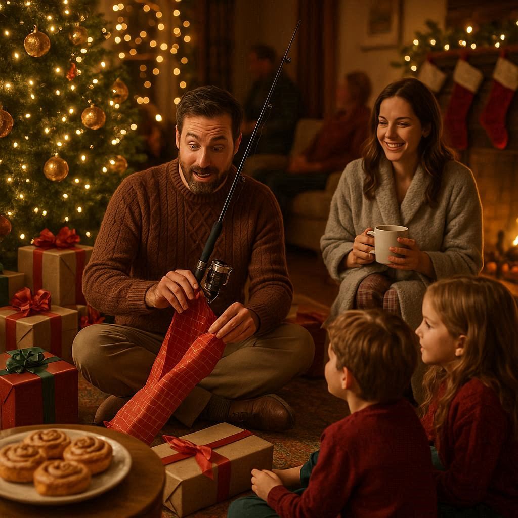 Mom walked over, placed one of the fishing rods gently on his lap, and said with a calm smile, “Merry Christmas, darling. Looks like you’ve got a new hobby.”