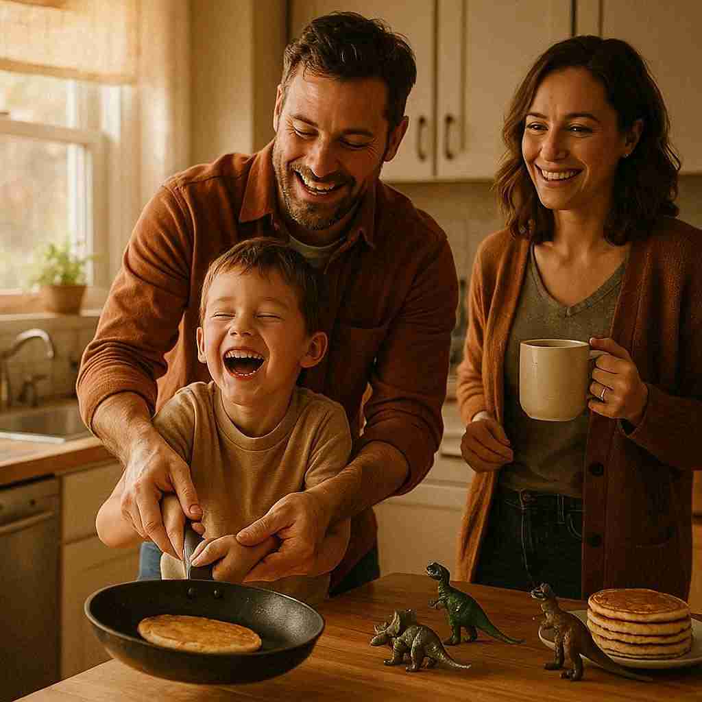 Our home grew louder and happier. Saturday pancakes became a tradition Eli insisted on flipping himself. Soccer Saturdays turned into muddy shoes and big smiles. At night he lined up his dinosaur army and gave each one a place on his pillow. He called us “Mommy” and “Daddy” with a pride that made my eyes sting every time.