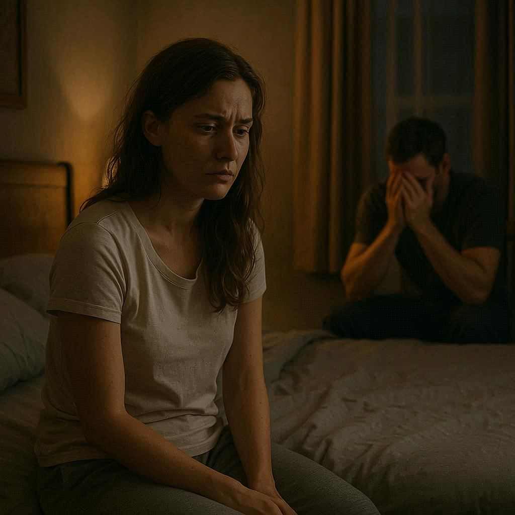 One night, Adam sat beside me on the couch after we’d finally put the baby down. He looked tense, his shoulders hunched, his eyes darting away from mine.
