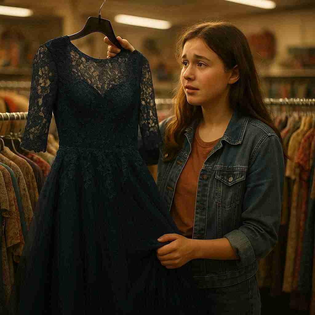 The Goodwill store smelled like old books and forgotten memories. Grandma headed straight to the formalwear section, her hands running through racks of dresses. Most of them looked outdated, but then I saw it.