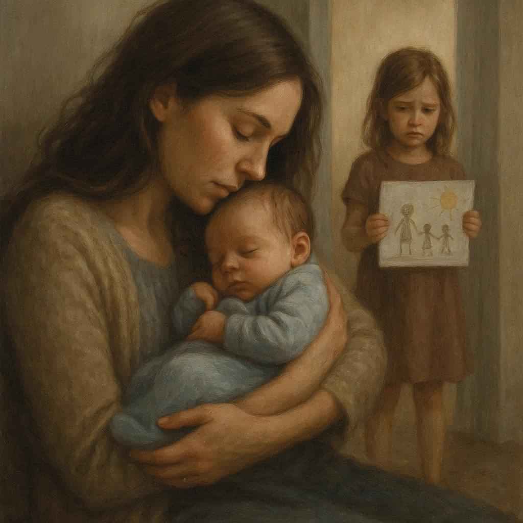 I saw it with my own eyes. One afternoon, Sophie ran to Julia with a drawing of their family. Julia barely glanced at it while rocking Daniel in her arms and said, “That’s nice, honey. Go put it on the fridge.”
