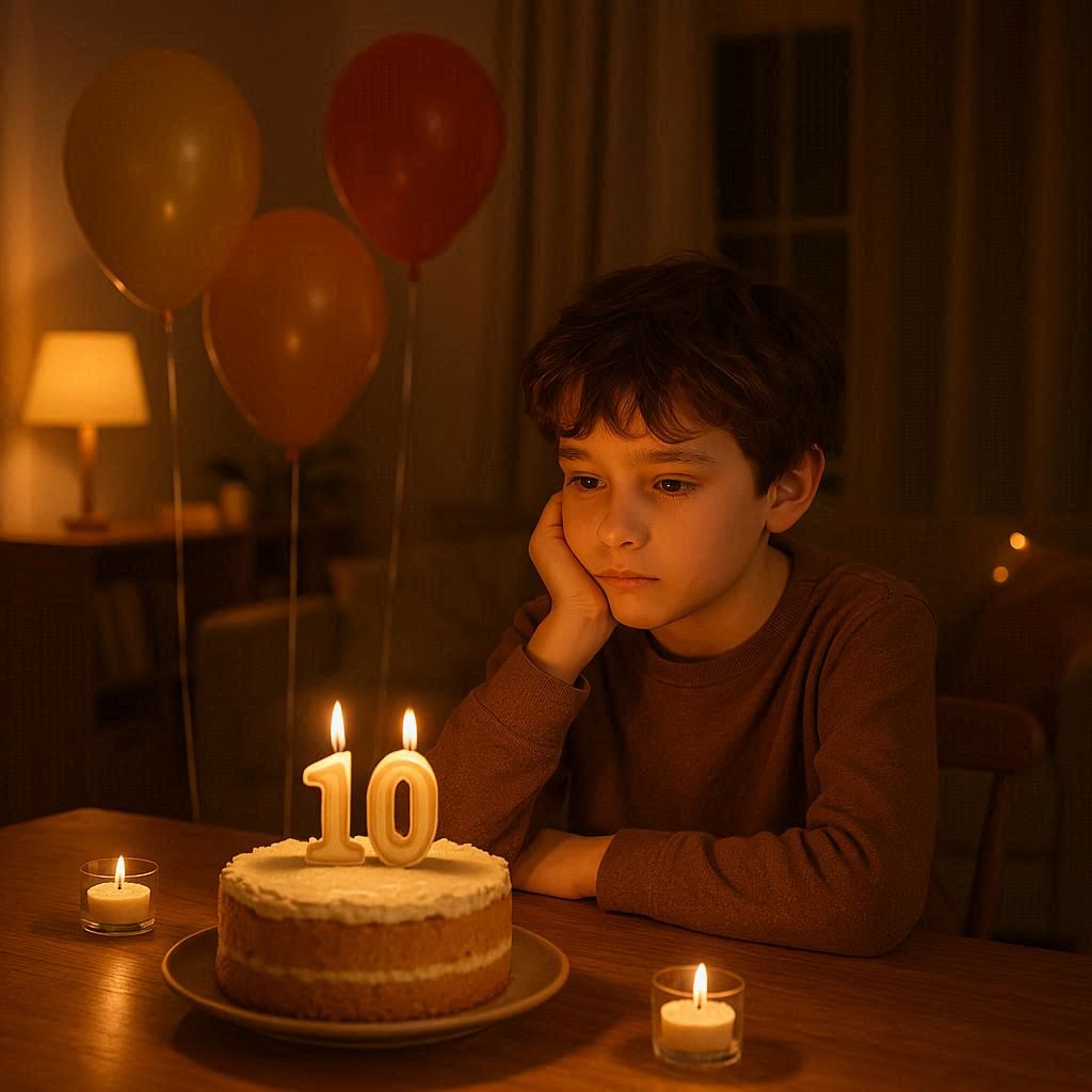 He sat at the table, eyes locked on the cake, ten candles glowing softly in the dim light. My husband and I smiled and clapped, waiting for him to make a wish.