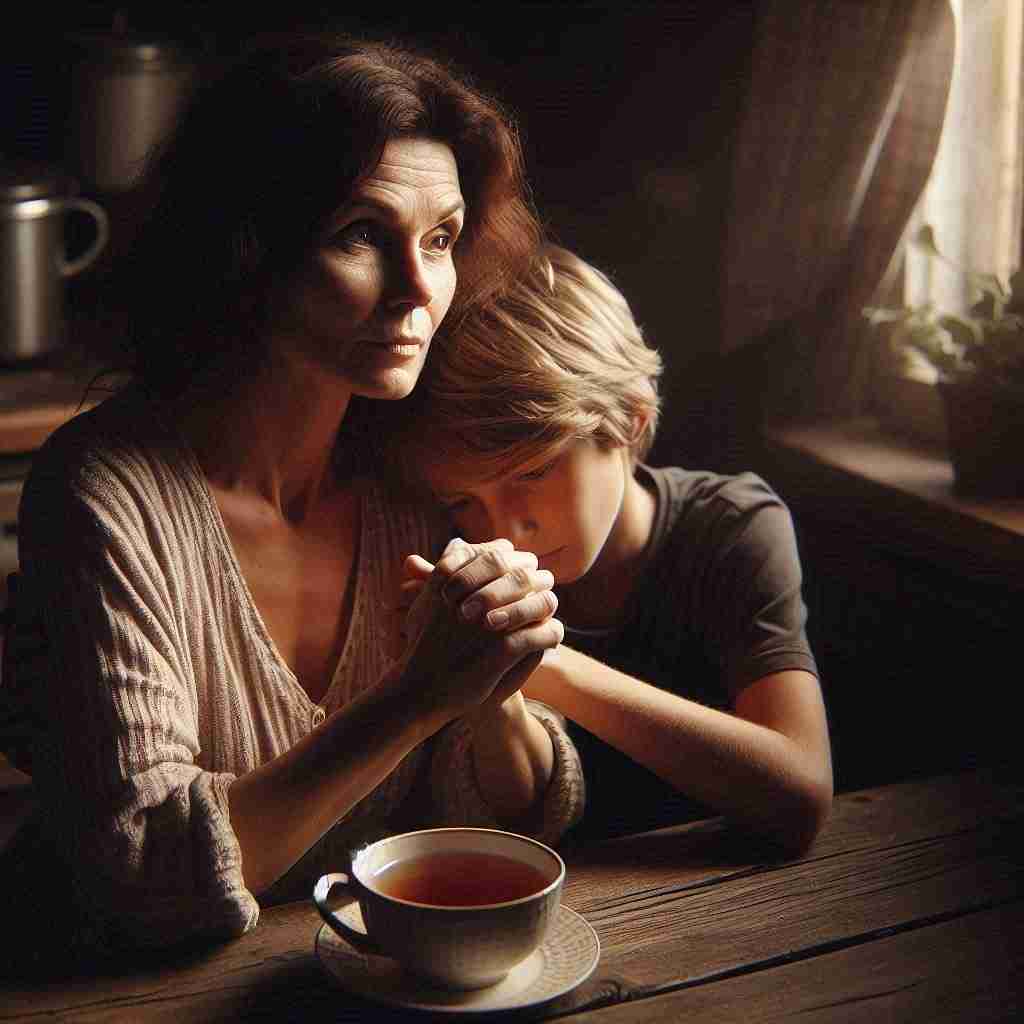 She was sitting at the table, her hands trembling slightly around a cup of tea she hadn’t touched. Her eyes were open but distant, like her thoughts had wandered somewhere heavy.