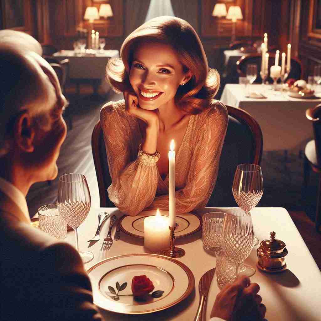 A wealthy woman and a kind but poor man were having dinner.