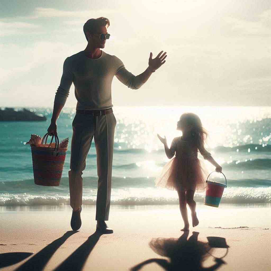 He was tall, wearing sunglasses that hid his eyes, and he held a large beach towel over his shoulder. From the outside, he looked like any other father spending a day at the beach with his child.