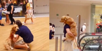 Dog Is Too Scared To Step Onto An Escalator – Owner Carries Him Like A Baby